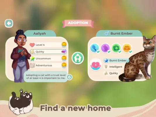 One unique feature of the game is the cat collection aspect. You can collect rare cats by using your home-grown plants to attract them. This adds a fun and challenging element to the game, as you must strategically grow and maintain your plants to attract the rarest cats. You can also match stray cats with new pet owners, giving them a loving home and completing your cat care duties. Overall, this game offers a unique and enjoyable experience for cat lovers and gamers alike.