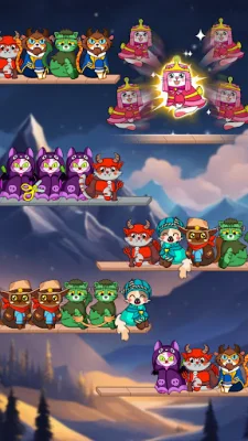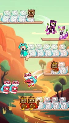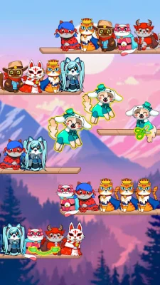 In this game, cats love to be with their groups to play and purr. Your task is to sort these kitty groups and help them get together. The levels range from simple tasks, like sorting cats by color, to more difficult challenges, such as freeing up certain cats before being able to sort the rest. The new rules added to the game make it harder than ever, providing a real challenge for players.