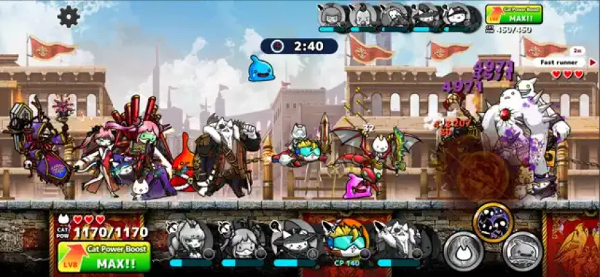 This game offers a new take on the tower defense genre, where players must continuously move forward and defeat enemies without turning back. The cats charge forward and will not stop until they achieve victory. The game also features a world filled with infinite possibilities, where players can mix and match cats with different weapons and magic collected throughout their journey. The only limit is the player's imagination.