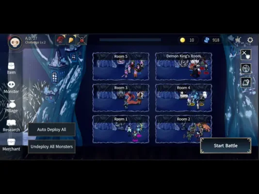 This application is a dungeon management game that allows players to summon and control various monsters in order to conquer the dungeon. With over 90 different monsters to choose from, each with unique attributes based on their type, race, and role, players must strategically select the best combination of monsters to achieve the best synergy. In addition to monsters, players can also equip them with over 80 different items and place more than 30 types of Totems in each room of the dungeon. With over 90 Relics available, players must carefully choose the best items to match their strategy.