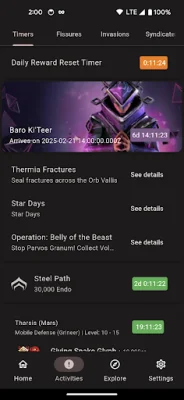 Navis also provides complete information on Fissures, including Void Storms and Steel Path. This is especially helpful for players who are looking for specific missions or resources. The app also offers details on Invasions and Sortie/Archon Hunt, as well as Nightwave challenges and rewards. This allows players to plan their gameplay and focus on completing specific tasks or challenges.