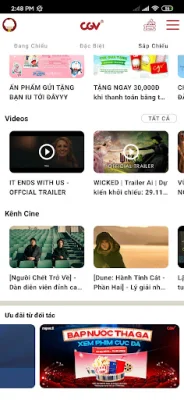 Ứng dụng CGV là một công cụ tuyệt vời để cập nhật thông tin và trailer về những bộ phim hot và bom tấn đang được chiếu tại rạp. Bạn có thể dễ dàng tìm thấy lịch chiếu của tất cả các rạp CGV mọi lúc, mọi nơi chỉ với một vài thao tác đơn giản. Bên cạnh đó, bạn cũng có thể xem những ưu đãi hấp dẫn dành riêng cho mình trên ứng dụng này.