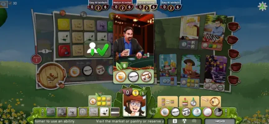 The Tea Market game is a fun and engaging application where players take on the role of a tea merchant. Each turn, players have the option to visit the tea market, the pantry, or reserve a customer and use a special ability. This allows for strategic decision-making and adds an element of surprise to the game.