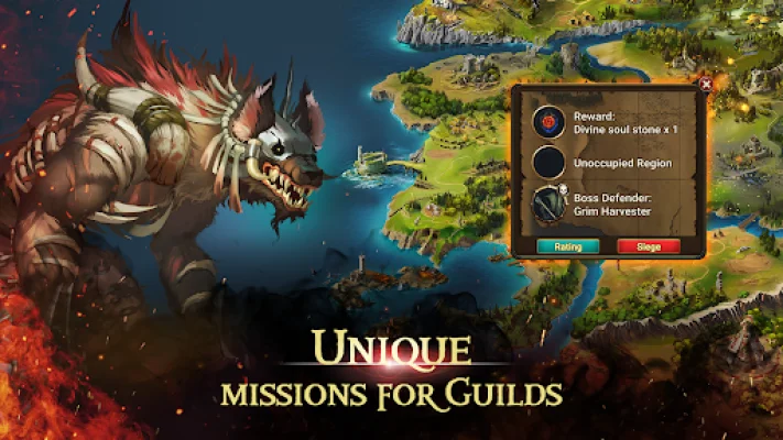 In our role play strategy game, players will encounter different and terrifying monsters with unique skills and tactics. It takes strategic thinking to defeat these monsters and loot their treasures. Players can also engage in wars between clans and fight against gnolls, alliances of dark knights, and magicians.