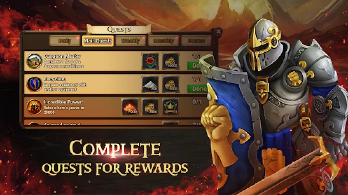 Completing missions in our game will unlock gold chests in dungeons, which players can use to upgrade their kingdom, buy an iron throne, a throne made of gold, and shields for their soldiers and army. With a unique system of guilds and heroes, players can continuously improve their realm, citadels, weapons, and equipment to become the ultimate ruler of Tartesia.