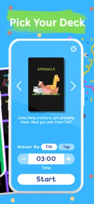 Guess the Words is a fun and interactive mobile application that allows you to play the classic game of Charades with your friends. It's a great way to spend time with friends and family, and it's suitable for all age groups. The game involves using hints from your friends to guess the word on your phone, and you can talk, act it out, sing, dance, or mime the words to help you guess. The app offers a variety of engaging decks with cards that cater to different interests. There are 10 free decks available, and over 30 more can be accessed through a subscription. This ensures that there is always something new and exciting to play with your friends. To play Charades, simply choose one of the many decks available and hold your phone on your forehead. Your friends will then give you hints to help you guess the word on your phone. If you guess correctly, press anywhere on the right side of the screen. If you want to skip a word, you can tap the left part of the screen. The goal is to guess as many words as possible before the timer runs out. The game is available in English, Spanish, and Ukrainian, making it accessible to a wider audience. Some examples of decks include Actions, Cosmos, Shapes, Brands, Movies, Food, Sports, Mobile games, Materials, Possessions, Gemstones, Transport, Books, Famous events, Cities, Occupations, and Household. And there are even more decks to choose from! One of the best things about Guess the Words is that it does not contain any ads, so your party experience will not be interrupted in any way. So gather your friends, be original with your hints, and have immense fun playing Charades with Guess the Words!