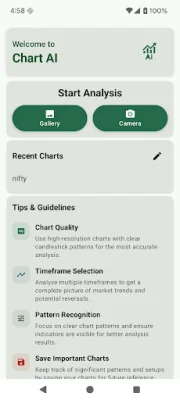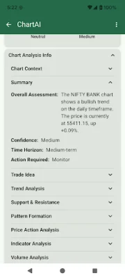 Chart AI is ideal for day traders, swing traders, investors, students learning technical analysis, and anyone curious about what the AI sees in a chart. You can upload charts from your gallery or take a photo with your camera, and view key insights such as trend, volatility, sentiment, and risk. Our detailed analysis summary also includes trade suggestions and tips and guidelines to improve chart quality.