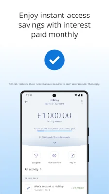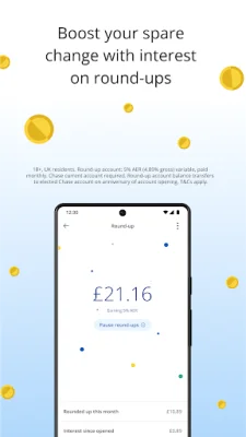 This application offers rewards for everyday spending, with 1% cashback on debit card purchases. By using this app, users can see their small purchases, such as morning coffee or weekly groceries, add up to something more. Additionally, users can open a Chase saver account and earn a competitive interest rate with instant access. Users can also take advantage of the round-up feature, where they can effortlessly set aside money by rounding up their spending to the nearest £1. This spare change will receive a 5% AER (4.89% gross) variable interest boost, paid monthly. The app also offers round-the-clock support, with easy access to help whenever needed. The app features a numberless card, with all card details stored securely in the app. Users can also freeze and unfreeze their card with ease, customize security controls, and more. The card can be used immediately for online purchases or added to Google Wallet. There are no fees or charges for using the card abroad, with a transparent exchange rate and no mark-ups from the app. The app also offers protection for users, with active fraud monitoring and coverage from the Financial Services Compensation Scheme for deposits up to £85,000. To use the app, users must be 18 years or older, a resident of the UK, and have a smartphone and UK mobile number. By downloading the app, users agree to the app license agreement. The app is owned by J.P. Morgan Europe Limited and is authorized and regulated by the Prudential Regulation Authority and the Financial Conduct Authority. Users' eligible deposits are protected by the Financial Services Compensation Scheme. Nutmeg, a part of the same group as J.P. Morgan Europe Limited, offers investment services and restricted advice. Products provided by Nutmeg are not guaranteed by Chase. Users should consider if a Nutmeg account and its features are suitable for their investment needs before applying. This application is copyrighted by Nutmeg Saving and Investment Limited and features the registered trademark "Nutmeg®." The company is authorized and regulated by the Financial Conduct Authority and registered in England and Wales.