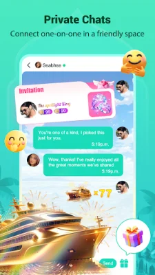 In addition to group interactions, Chatti also offers private chat connections for one-on-one conversations. This allows users to catch up with old friends or forge new bonds in a safe and friendly space. The app also features stunning gifts and decorations that users can use to personalize their chat rooms and express their unique style.