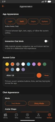 For users looking to build rich world context, ChatticaAI offers Lorebooks. These linked lorebooks automatically inject matching entries into prompts, keeping characters consistent and worlds alive. The app also offers multiple theme options for customization.