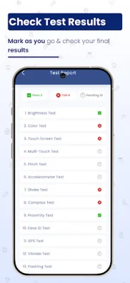 One of the standout features of this app is its ability to generate a detailed PDF report of all the test results. This report can be easily shared via popular messaging platforms like WhatsApp and Messenger, or through email. This makes it convenient for both buyers and sellers to have a record of the device's condition.