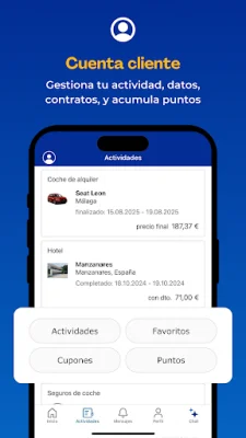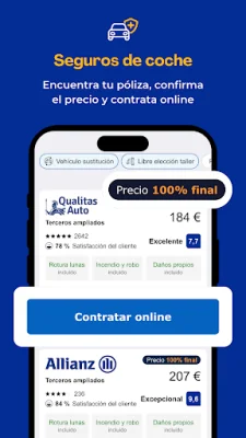 Descarga la aplicación para comparar precios y empezar a ahorrar en tus reservas y contratos. Las mejores ofertas en pocos segundos, y en una sola app. Usa nuestros filtros como precio, modalidad, coberturas, ubicación...para ver sólo las ofertas que te interesan.