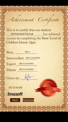 In summary, this app provides a fun and engaging way for children to learn about Islam while also promoting healthy competition and a sense of achievement. With its randomized questions, grading system, and beautiful certificates, it is sure to be a valuable tool for parents and children alike.