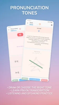 For those looking to improve their Chinese writing skills, our app offers a stroke-by-stroke guide for over 10,000 Chinese characters, with more being added regularly. You can also practice translation from Chinese to English or vice versa, and work on mastering the different tones in Chinese characters. The app also provides listening and pronunciation practice, as well as transcription exercises in pinyin.
