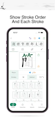In addition to the character writing feature, the application also displays important information such as Pinyin, radical, and definition for each character. It offers multiple ways to search for characters, making it easier to find the ones you need. You can also save your favorite characters for future reference. The application also allows you to practice handwriting, which can be a useful tool for improving your writing skills.