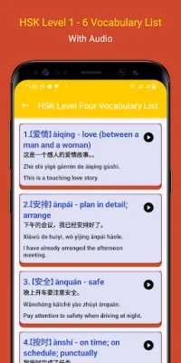 Embark on an exciting journey to master the Chinese language with our app, "Chinese Vocabulary for Hsk". Whether you're a novice or aiming to enhance your Mandarin proficiency, this app is designed to make your language-learning experience engaging, effective, and accessible. With a comprehensive collection of Chinese vocabulary aligned with the HSK (Hanyu Shuiping Kaoshi) levels 1-6, this app is perfect for anyone looking to improve their Chinese language skills.