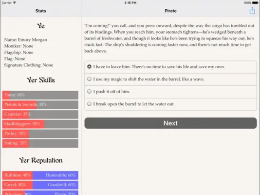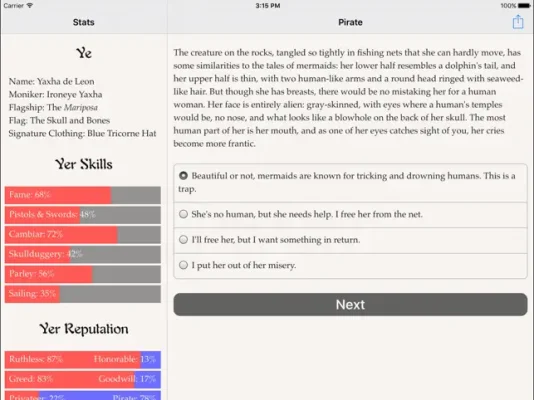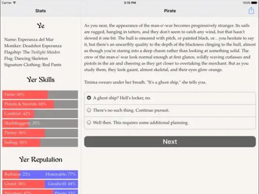 "Choice of the Pirate" is an exciting and action-packed interactive novel written by Alana Joli Abbott, the author of "Choice of Kung Fu" and "Showdown at Willow Creek." This game puts you in control of the story through your choices, making it a unique and personalized experience. With 165,000 words, the game is entirely text-based, allowing your imagination to run wild without the distraction of graphics or sound effects.