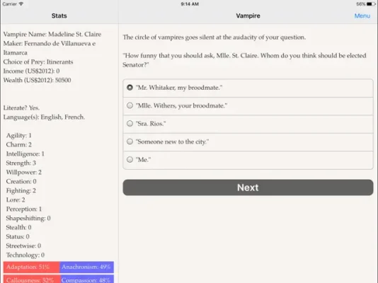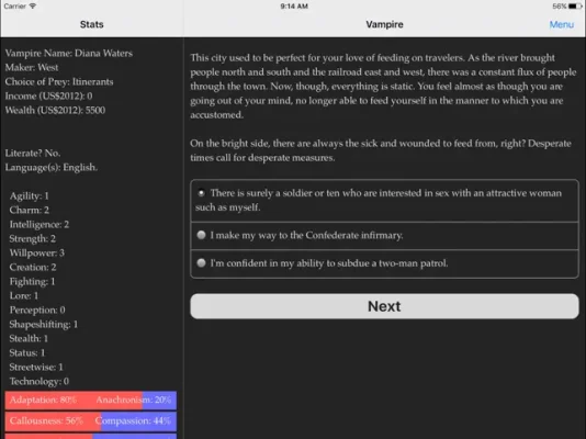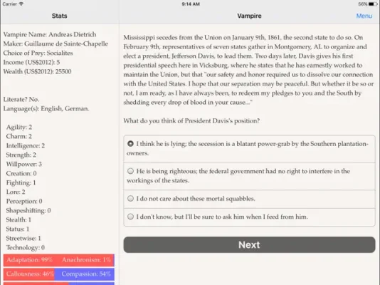 As you progress through the game, you will uncover the mysteries of vampirekind and even have the chance to meet famous historical figures and drink their blood. The ultimate question remains: will you be satisfied with the American Republic, or will you drain it dry? The choice is yours in Choice of the Vampire.