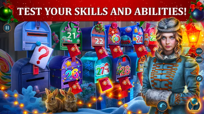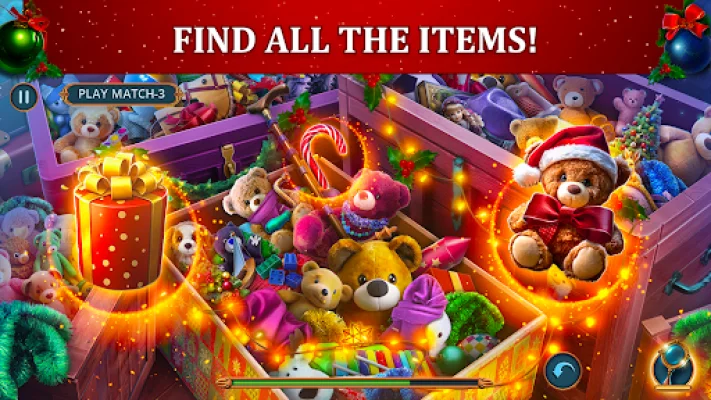 Experience heartwarming stories as you team up with Santa Claus to solve magic puzzles and discover hidden treasures in this unique Christmas adventure. Immerse yourself in a world full of holiday wonders, complete with hidden object games and item searches that capture the magic of Christmas.
