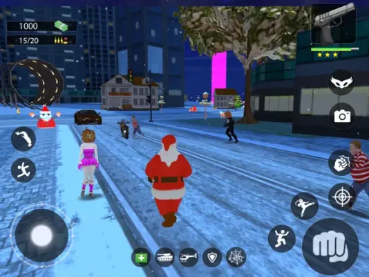 But the game is not just about fighting crime. As the Santa Rope Hero, players don the iconic red suit and wield a magical rope with incredible powers. Use your rope to swing through the city, scale skyscrapers, and perform gravity-defying stunts. Your mission is to maintain the holiday spirit by taking on supervillains and evildoers, ensuring that the city's inhabitants can experience the magic of the season.