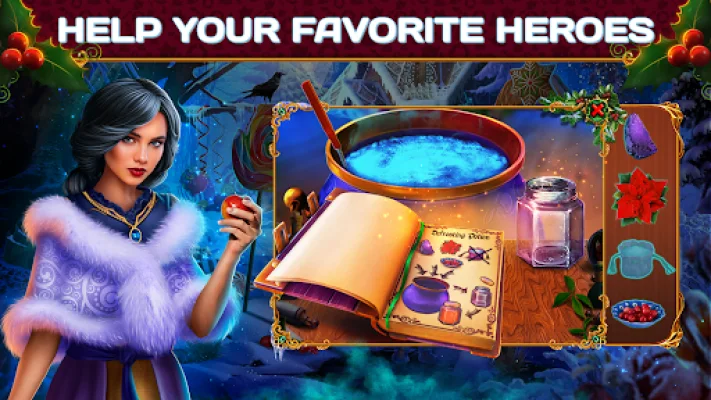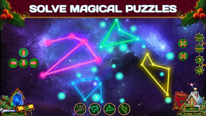 Challenge your logic and deduction skills by solving festive puzzles and mini-games. Search for hidden objects in beautifully drawn locations and earn achievements. Keep an eye out for cleverly hidden collectibles like constellations, Christmas trees, and gingerbread stars.
