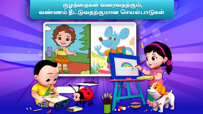 ChuChu TV videos promote moral values such as love, care, sharing, and helping others. Kids can sing and dance along to their favorite Tamil videos, which also teach traditional songs, colors, animals, fruits, and more. The app is trusted by over 100 million parents worldwide.