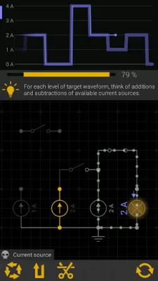 As you progress through the puzzles, you will unlock essential circuit components such as resistors, capacitors, lamps, switches, voltage sources, and more. This not only allows you to solve more complex puzzles, but also gives you the tools to build your own circuits in sandbox mode. With this app, you can learn how to add and divide voltages and currents, calculate equivalent resistance and capacitance, and apply Ohm's law and Kirchhoff's laws.