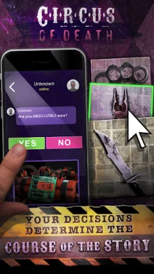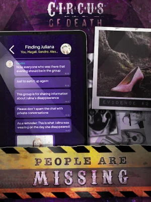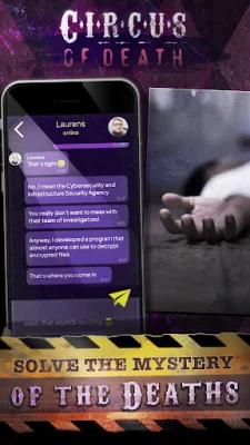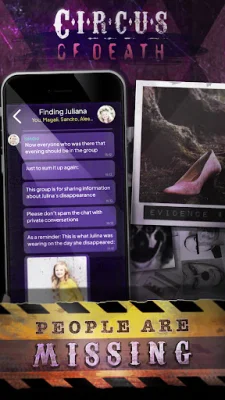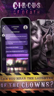 Communicate with different characters through a messenger as you unravel the dark secrets surrounding the "CIRCUS OF DEATH". Use your skills to collect clues, solve puzzles, and ultimately defeat the evil that haunts the circus. Are you ready for this heart-pumping challenge? Then let the show begin!