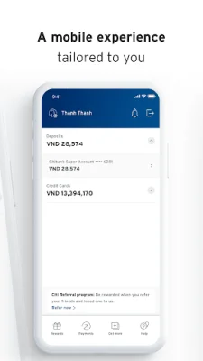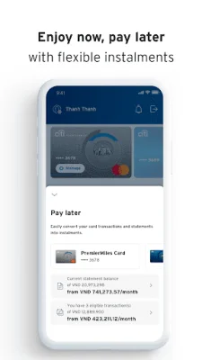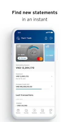 Manage your account with ease and security through the Citibank VN Mobile app. With the use of biometrics, you can quickly and securely log in to your account. Upon logging in, you will have access to your credit card and bank statements, as well as any urgent actions and recent transactions, all conveniently displayed on your dashboard. Stay up to date with personalized offers, notifications, and upgrades through the app. Your accounts will be neatly grouped by category, making it easy to track your spending and savings. This feature allows you to have a better understanding of your financial habits. The app also allows you to make payments and transfers effortlessly. With just a tap on your dashboard, you can convert credit card transactions and statement balances into monthly installments through the installment loan program. You can also access all your credit card offers and take advantage of Citi privileges. To help you better understand the features and products offered by Citibank VN, the app provides a smarter FAQ section. As you type, the app will predict what you are looking for, making it quicker and easier to find the information you need. The Citibank VN Mobile app is continuously improving, with more updates and improvements coming in the next few months. The goal is to provide the best mobile banking experience for customers, and this is just the beginning. Thank you for choosing Citibank VN as your banking partner. Please note that the use of this app is only for customers of Citibank, N.A. - Ho Chi Minh City Branch and Hanoi Branch (Citibank VN). The content provided through the app is specifically created for the territories where Citibank Vietnam operates and is licensed to operate.