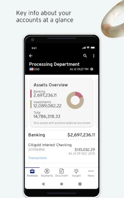 Citi Private Bank In View also offers quick access to holdings, performance, and activity screens. This makes it easier for clients to stay updated on their investments and banking activities, without having to navigate through multiple screens or menus.
