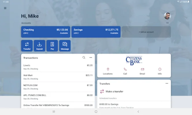 The Citizens Bank Mobile Banking App also offers person-to-person payments, eStatements, and the ability to locate branch and ATM locations. Additionally, you have 24/7 access to activate, temporarily lock, re-order, or report lost or stolen debit cards. You can also securely chat with Citizens Bank during regular banking hours for any assistance you may need. Best of all, there is no charge for using the app, although messaging, airtime, and data charges from your wireless carrier may apply. As a member of the FDIC, Citizens Bank is committed to providing a user-friendly and secure mobile banking experience for its customers.