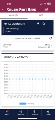 Lastly, the app includes a feature to help users locate Citizens First Bank branches and ATMs. This makes it easy to find the nearest location for in-person banking needs.