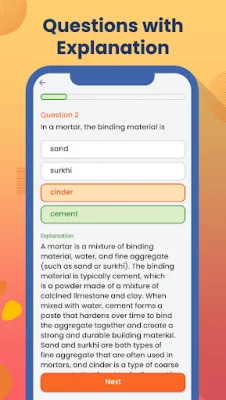 In addition to these features, our app also provides detailed explanations for each question, helping you to understand the correct answer and improve your understanding of the subject matter. This is especially helpful for complex topics such as Building Materials, Building Construction, and Advanced Surveying. With our app, you can track your progress and see how far you've come in your studies.