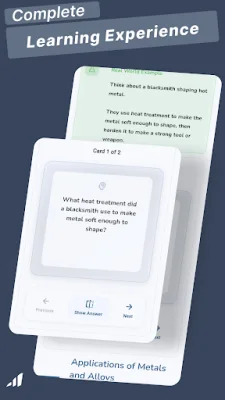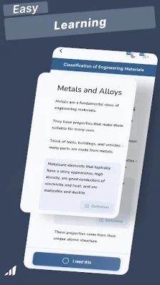 The learning progression is carefully structured, providing a clear and topic-by-topic path for better understanding. This allows users to build their knowledge step by step, ensuring a solid foundation in the subject. The app also offers detailed coverage of key concepts such as concrete, steel, asphalt, timber, and composites, making it a comprehensive resource for anyone looking to improve their understanding of civil engineering materials.