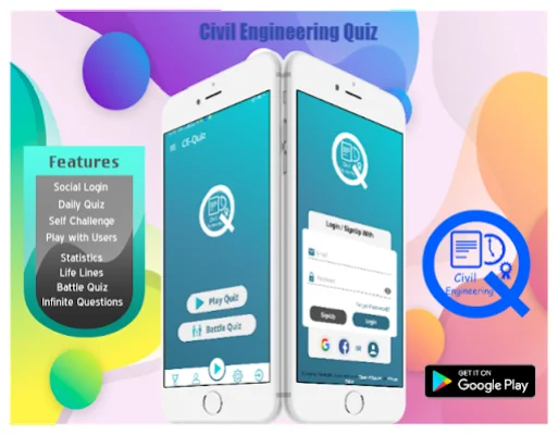 This application is designed for students and individuals interested in Civil Engineering. It offers a variety of features to enhance learning and test knowledge in this subject. Users have the option to login through social media accounts or as a guest. This allows for easy access and personalized experience.