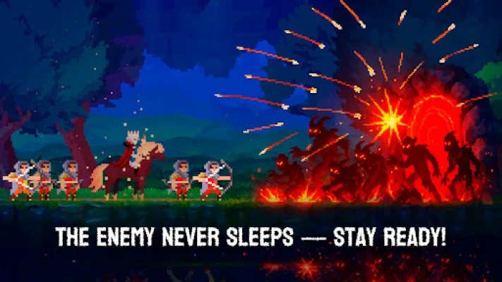 Of course, with expansion comes the need for defense. As night falls, you must face waves of enemies and equip your army with swords, bows, and shields to protect your kingdom. Using tactical strategies, you must repel relentless invaders and defend your legacy.