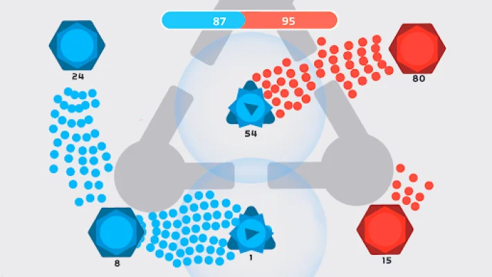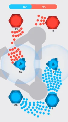In this game, your main objective is to capture all of the enemy's cells in the arena. To do this, you must upgrade your buildings, gather an army of dots, and send them to seize neutral or rival cells. However, this task will not be easy and will require strategic thinking and quick reactions.