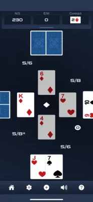 The objective of the game is for players to bid on the number of tricks they believe their team can win above 6 in any suit or "No Trumps". The bidding process is similar to an auction, with players taking turns to make higher bids or pass. The winning bidder's team must then try to win enough tricks to meet their contract, while the opposing team tries to prevent them from doing so. The app also includes a "Rubber" feature, where the first team to win two out of three games wins the overall match.