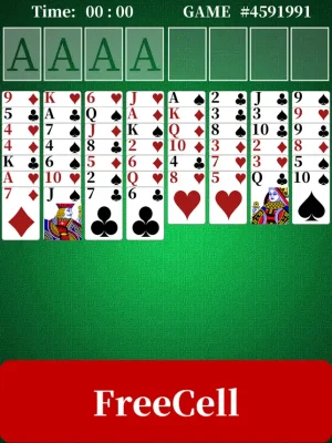 In FreeCell, the objective is to clear all cards from the table by building suits from Ace to King in each Foundation pile. Players can also use the free cells to temporarily store any single card. The game offers both a random deal and a classic deal, as well as the option to play a specific numbered deal.