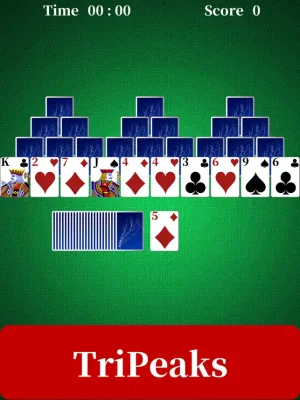 TriPeaks requires players to clear the board by tapping face-up cards that are either one above or one below the top card in the waste pile.