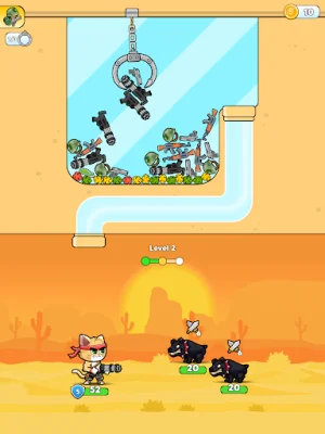 Claw Patrol is an exciting and action-packed game that puts you in the role of Army Cat, a fierce feline defender of his territory. Your mission is to use the claw machine to catch powerful items and strategically use them against waves of enemies. With a combination of skillful catches and tactical use of power-ups, you can maximize your success and defend your territory with ease.