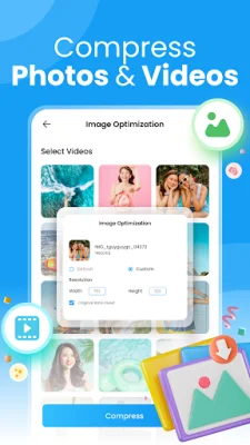 The app also offers video optimization, allowing you to compress large videos without sacrificing quality. This is especially useful for those who frequently record videos on their phone and need to save space without losing important content.