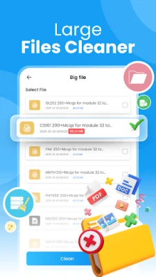 The app also includes a tool for finding and managing large files, such as high-resolution videos or documents. This can help you quickly identify and delete files that are taking up a significant amount of storage space.