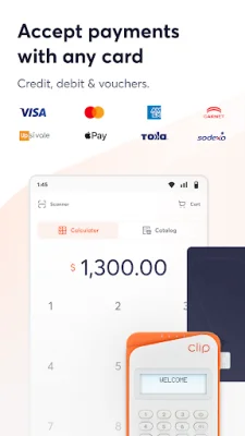 Clip is a convenient and hassle-free app that allows you to easily accept payments from all major credit and debit cards, as well as contactless technology and Samsung Pay. With no complicated paperwork, monthly fees, or minimum sales required, you can receive your money every day without any delays. One of the main reasons to choose Clip is its wide range of accepted payment methods. Not only does it accept all major credit and debit cards such as American Express, Visa, and Mastercard, but it also works with popular prepaid cards like Sí Vale, Edenred, Sodexo, and Carnet. Additionally, it supports contactless technology, Apple Pay, and Samsung Pay, making it a versatile and convenient option for both you and your customers. Another great feature of Clip is its fast deposit times. With Clip Clásico and Pagos a Distancia Clip, your money will be deposited within 48 hours, while with Clip Plus, Plus 2, Pro, and Total, it only takes 24 hours. This means that even if you make a sale on a weekend or holiday, you can still receive your money quickly and without any delays. Clip also offers the unique ability to accept payments without your client physically being present. By simply sending a link through your preferred social network, you can easily and securely complete transactions from anywhere. This makes it the easiest, fastest, and safest way to make payments and grow your business. In addition to its convenient payment options, Clip also offers up to 12 months without interest with over 19 banks. This allows you to offer flexible payment plans to your customers, making it easier for them to make purchases and increasing your sales potential. To get started with Clip, all you need to do is download the app and sign up in less than 5 minutes. You can also purchase a reader from clip.mx with free shipping or find a store near you at clip.mx/tiendas. With the app installed and your reader ready, you can start accepting card payments and growing your business right away. The transparent fee for using Clip is 3.6% + IVA for payments made in a single exhibition. This means that you can easily calculate and understand the cost of using the app without any hidden fees or surprises. If you have any doubts or questions, Clip offers 24/7 customer support through WhatsApp or by phone at 55 6393-2323. This ensures that you can always get the help you need, whenever you need it. With its user-friendly interface, versatile payment options, and reliable customer support, Clip is the perfect app for any business looking to streamline their payment process and increase sales.