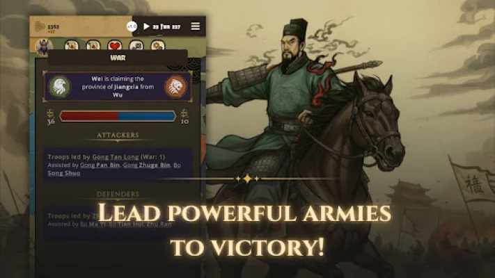 Come for the setting, stay for the deep strategic gameplay! In this game, you will take on the role of a ruler during the Three Kingdoms Era in China. Your ultimate goal is to conquer the land and bring order to your kingdom. But it won't be easy - you'll need to use your strategic skills and long-term planning to defeat your cunning enemies.