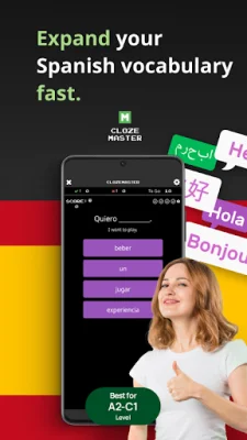 Clozemaster is an innovative language learning app that helps users expand their Spanish vocabulary quickly and effortlessly. With thousands of fill-in-the-blank sentences tailored to your skill level, this app is perfect for both advanced beginners and intermediate learners. Through fun and engaging gameplay, Clozemaster makes the process of learning new words and phrases addictive and enjoyable. One of the key features of Clozemaster is its massive collection of Spanish sentences, ranging from the most common to the least common words. Users can also choose to play at their own pace, making it easy to jump in at any point in the learning process. The app also offers personalized practice modes and difficulty levels, allowing users to customize their learning journey. In addition to vocabulary, Clozemaster also helps improve Spanish listening and grammar skills. Users can listen to the sentence before seeing it and then fill in the missing word, making it a great tool for improving comprehension. The app also offers grammar-focused collections of sentences, such as Por vs Para, the Subjunctive, Spanish prepositions, and Ser vs Estar. One of the standout features of Clozemaster is its offline mode, which allows users to learn Spanish vocabulary anytime, anywhere, even without an internet connection. The app also offers progress tracking, so users can keep track of their improvement with detailed statistics and leaderboards. Clozemaster is more than just a language learning app; it's a personal vocabulary trainer. By focusing on context-based learning, users can retain new Spanish words and phrases more effectively. Whether you're preparing for a trip, an exam, or simply looking to improve your Spanish skills, Clozemaster is the perfect tool to help you achieve your goals. Join thousands of language learners worldwide and take your Spanish skills to the next level with Clozemaster. Download the app today and start mastering new vocabulary with ease. And if you need any support or want to provide feedback, you can reach out to the team at [email protected] or visit their website at https://www.clozemaster.com. So why wait? Download Clozemaster now and unlock the power of language learning!