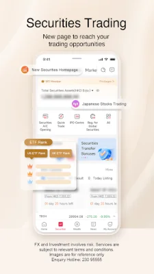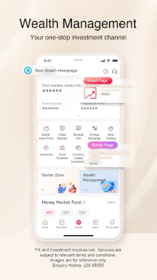 The app offers a variety of services, including convenient account opening, account and asset management, free investment information, and personalized services. Users can open a banking account with their HKID card and mobile phone, and new customers can apply for account opening services online after identity verification in a branch.