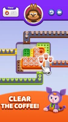 The gameplay is simple yet captivating, where players tap to move coffee cups to different trays and ensure each tray contains only cups of the same color. As the levels progress, the challenges become more complex, testing players' logic and strategic thinking. Coffee Escape is suitable for all ages, making it perfect for short breaks, evening wind-downs, or passing time productively. It also enhances observation, logical reasoning, and focus, providing brain training without boredom.