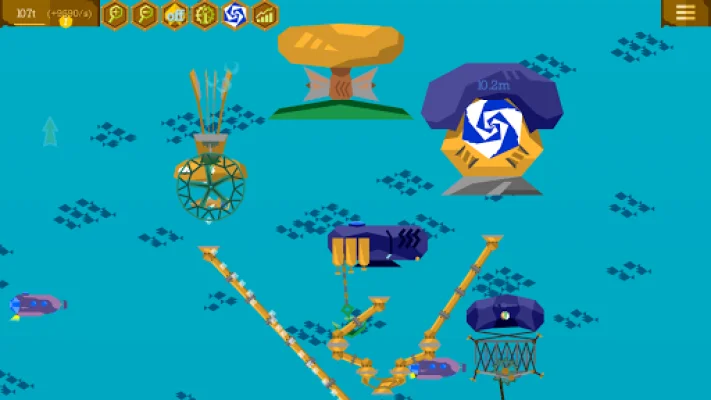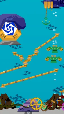 One of the unique features of this game is the "pins" concept, which allows you to design even the most bizarre machine interactions and contraptions. You can also create resources production chains by combining various gases to produce money. The playable area can be expanded sideways with clockwork crabs and submarines, upwards with main base upgrades, and downwards by drilling the seabed.