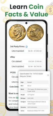 Coins-Value.com is an innovative and user-friendly app that offers a wide range of features to help coin collectors manage and enhance their collections. With advanced AI-powered coin identification technology, the app can instantly recognize nearly any coin type and year with high accuracy. This makes it effortless for users to identify their coins and obtain detailed information about them. One of the key features of Coins-Value.com is its comprehensive coin value lookup. The app provides real-time market values for coins, whether they are circulated or uncirculated. This allows users to make informed decisions about buying, selling, or insuring their coins. Additionally, the app offers in-depth appraisal information, including historical context, rarity, and design details, which enriches the understanding of a coin's value and uniqueness. Coins-Value.com also offers tools to help users assess the grade and authenticity of their coins. By analyzing images of the coin, the app can provide an estimated grade and also perform an authenticity check to determine if the coin is genuine or possibly counterfeit. This feature is crucial for collectors who want to ensure the authenticity of their coins. Another useful feature of Coins-Value.com is its cleaning assessment tool. This allows users to understand how cleaning may have affected the value of their coins. By assessing signs of cleaning, the app can determine the overall worth and marketability of a coin. The app also provides access to an extensive database of historical auction prices and trends for similar coins. This feature allows users to gauge market interest and potential selling prices for their coins. Additionally, Coins-Value.com has a global coin database, which not only focuses on U.S. coins but also identifies coins from around the world. This offers valuable historical context for international collections. Coins-Value.com has been designed with collectors in mind, making it intuitive and easy to use. With its user-friendly design, the app allows users to focus on building and managing their collections without any hassle. Overall, Coins-Value.com is a must-have app for coin collectors, providing them with the power to transform their collections in the palm of their hand.